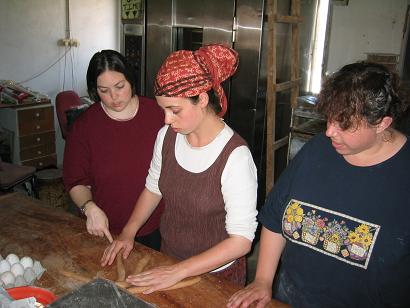 This past Friday we had our first Hebrew bread bake! We used eggs from Kdumim, honey from Ofra, olive oil from the Golan, wheat from Itamar, water from the tap and salt of the earth. We learned how to knead bread, and how to braid it. It was a fun event and an inspirational one - but the best part was eating the bread Friday night. MMMM..MMMM So good and nourishing. Blessed are you G-d who brings forth bread from the LAND!