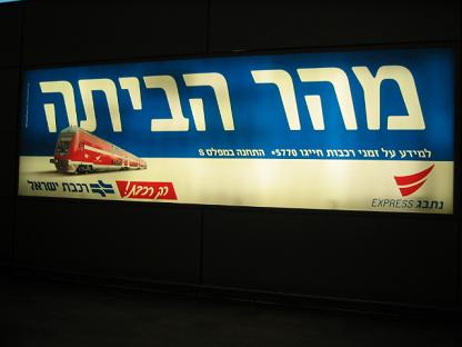 Back in Ben Gurion - sign reads: "Come quickly home!"
