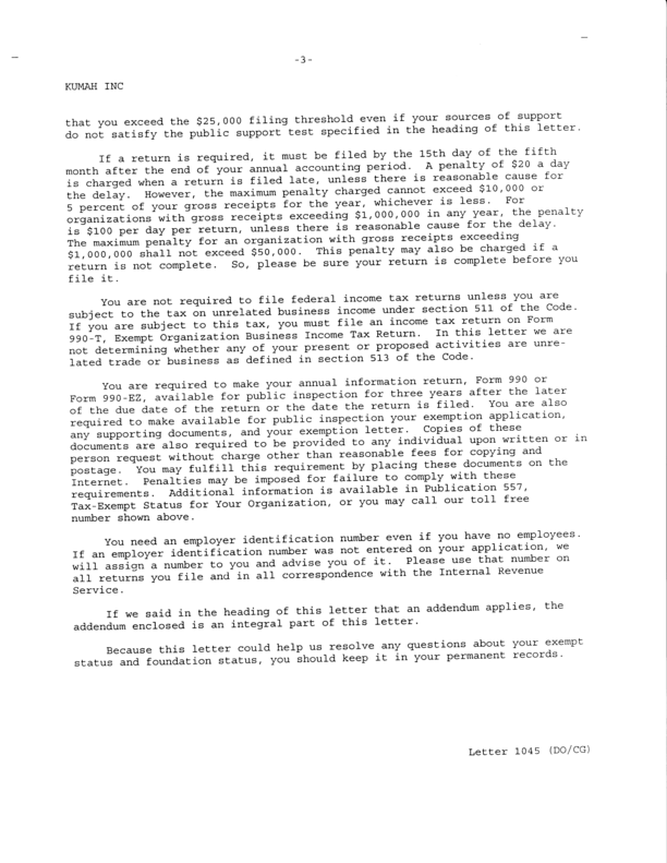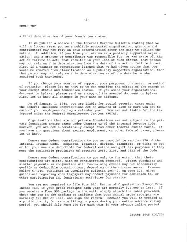 This page contains images of all the documents relevant to our tax-exempt status. If you need more information, please contact us at Arise @ Kumah.org.
