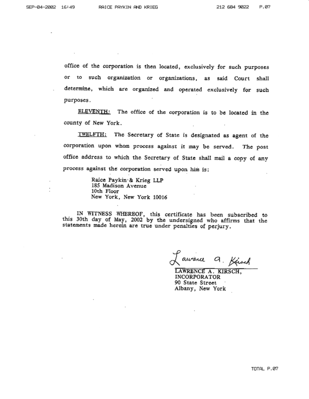 Certificate of Incorporation